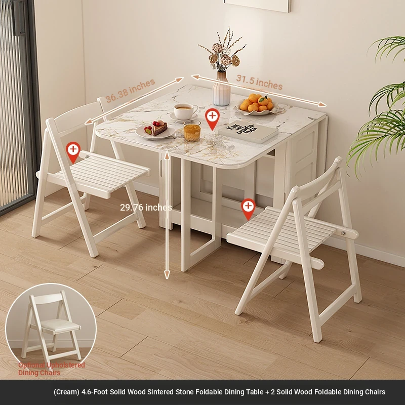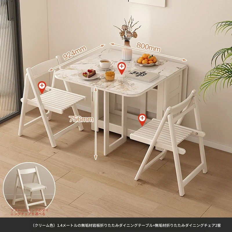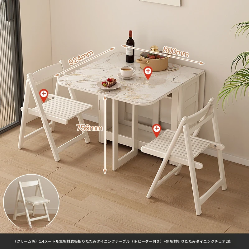 1.4メートル無垢材ロックプレート折りたたみダイニングテーブル【クリーム色】+IHコンロ+無垢材折りたたみチェア*2 抗菌ロックプレート
