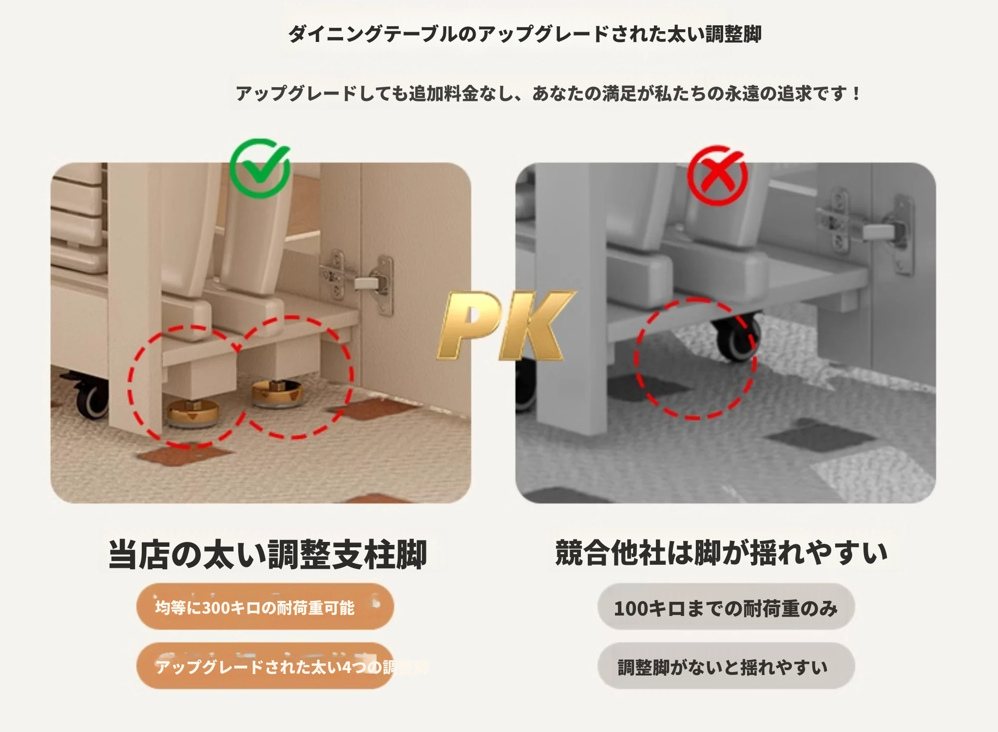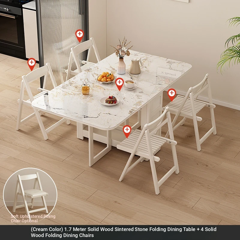 1.7メートル無垢材ロックプレート折りたたみダイニングテーブル【クリーム色】+無垢材折りたたみチェア*4 抗菌ロックプレート
