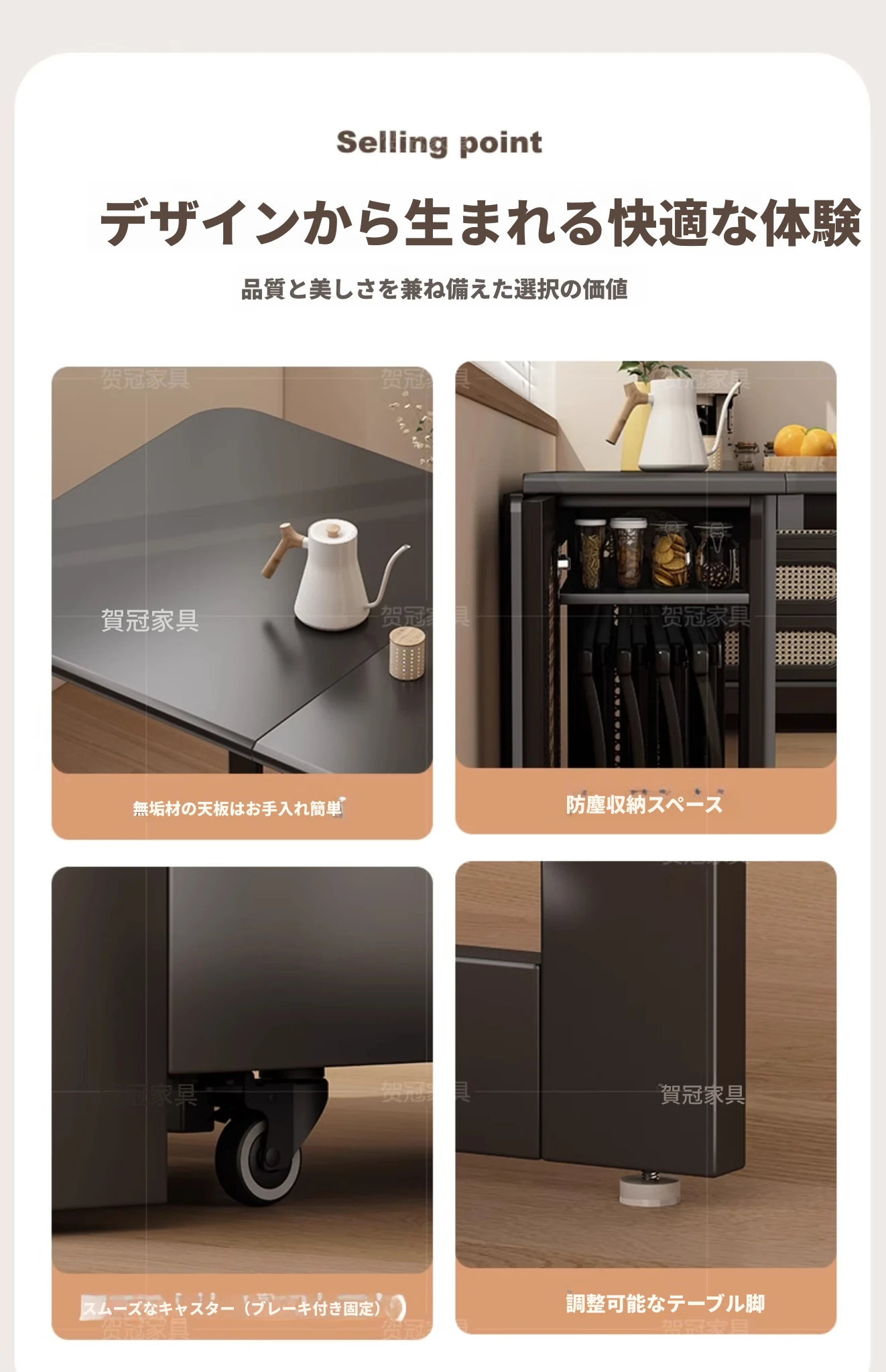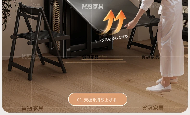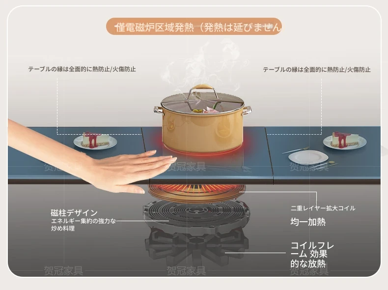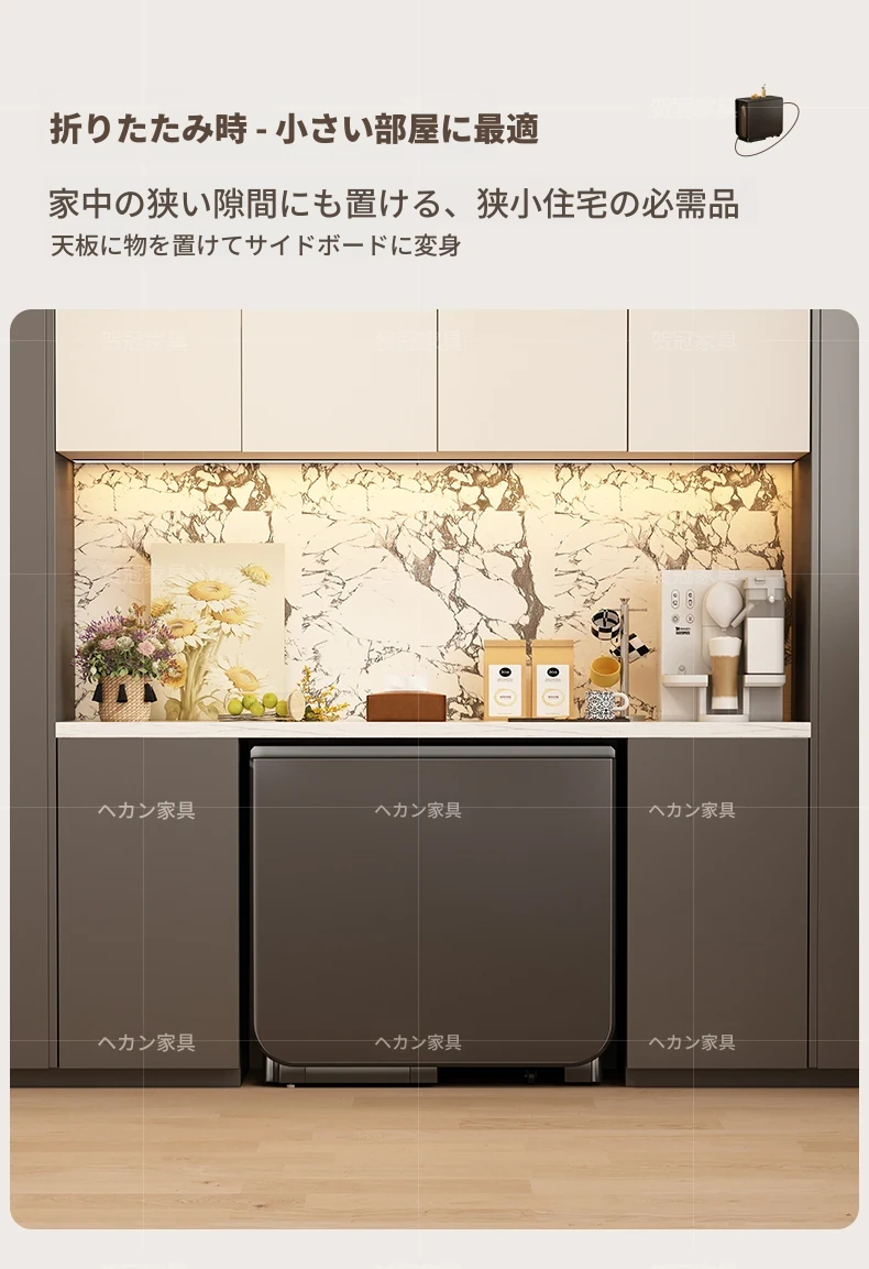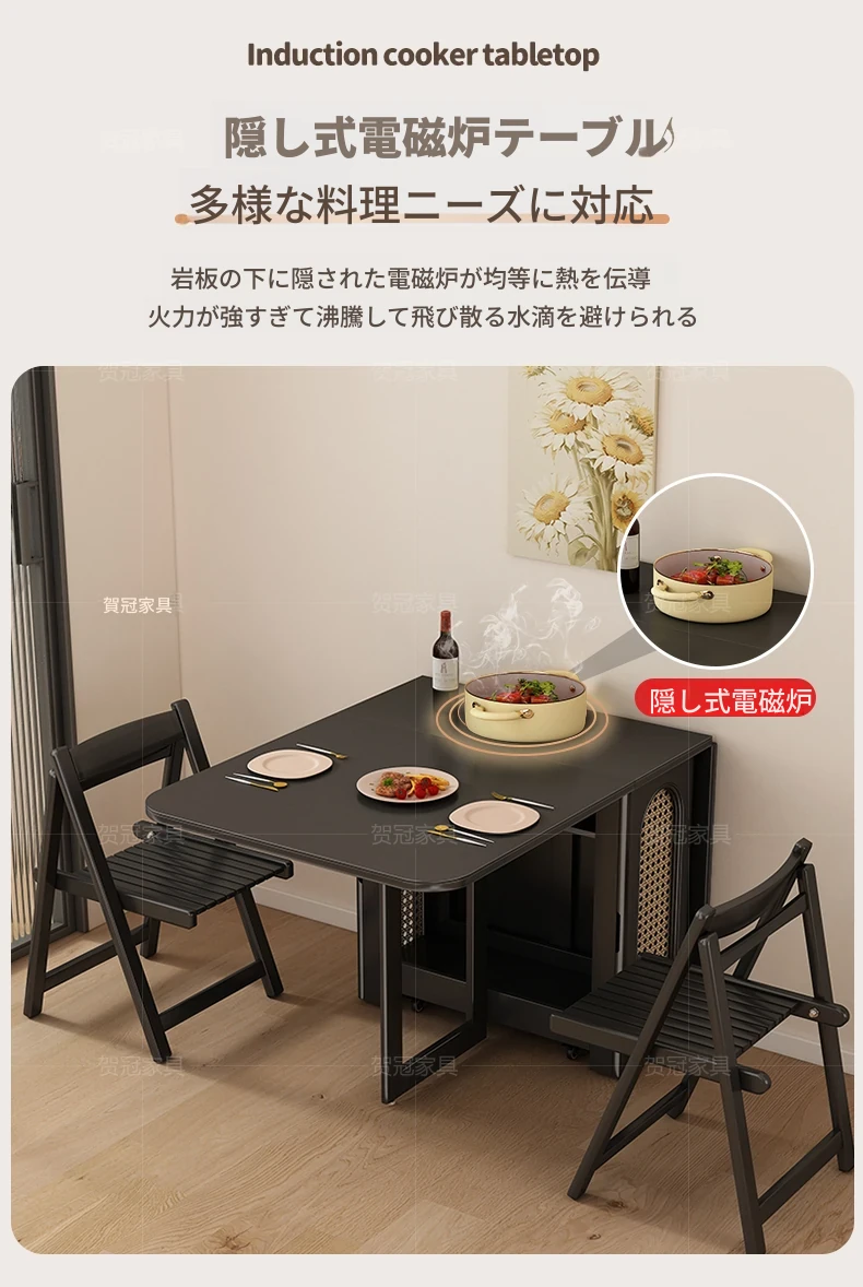 高級電磁調理器付き折り畳み式モバイルダイニングテーブル - スペースを無駄にしない、簡単に収納&持ち運び可能なデザイン!高品質な食事体験をお届けします!