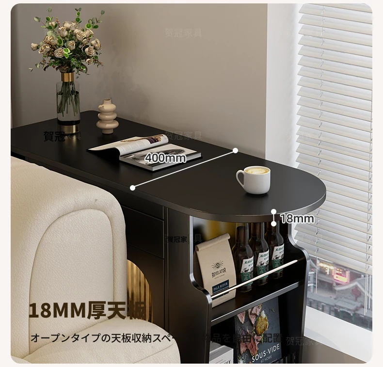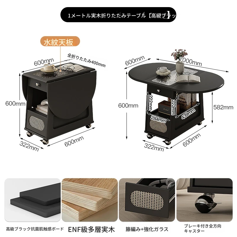 【レトロブラック】0.8メートル移動式フリップトップベッドサイドテーブル