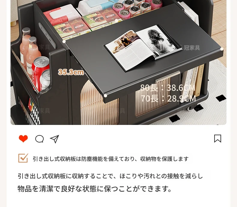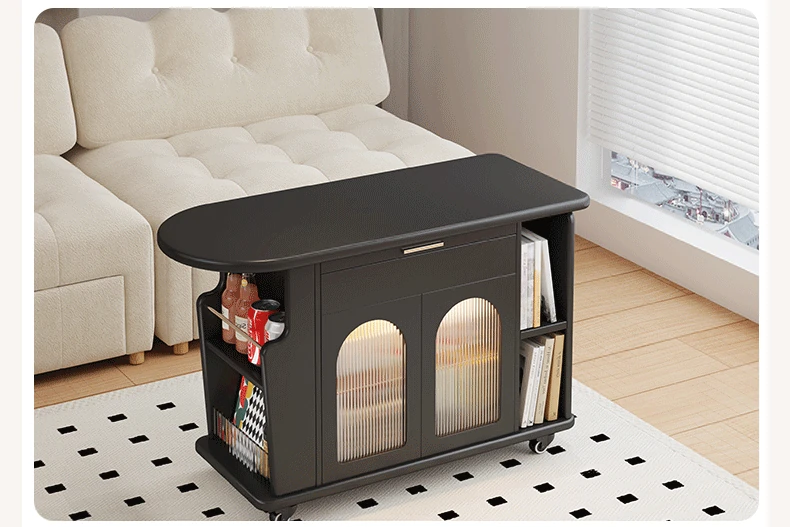 【レトロブラック】0.8メートル移動式フリップトップ昇降ベッドサイドテーブル