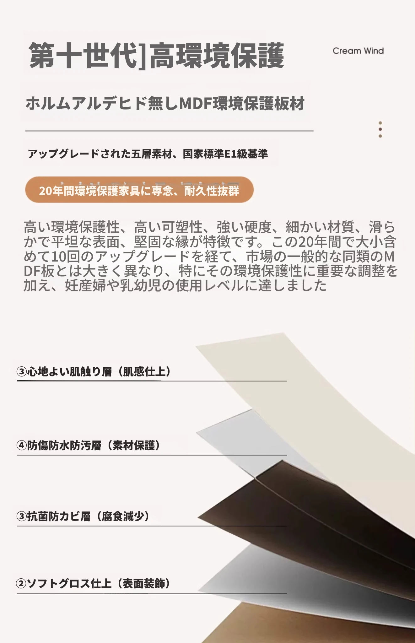 【クリームホワイト】0.8メートル移動式フリップトップ昇降ベッドサイドテーブル