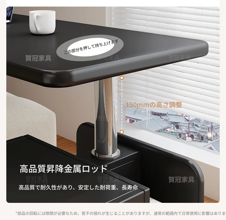 0.8メートル昇降回転ベッドサイドテーブル【プレミアムブラック】