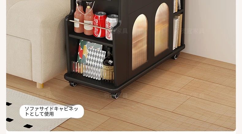 【レトロブラック】0.6メートル移動式フリップトップベッドサイド