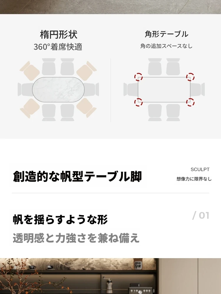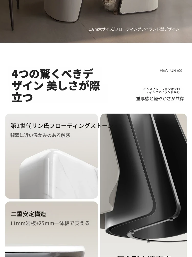 (1)【単卓|1.8メートル】浮光岩板ダイニングテーブル