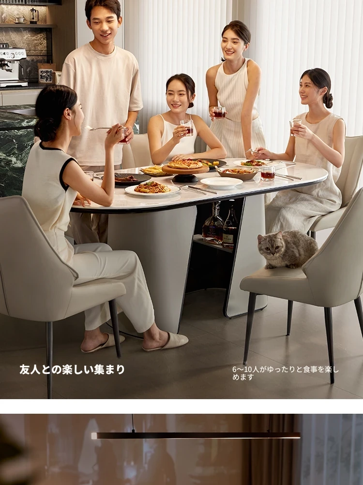 (7)【1卓6椅|1.8メートル】浮光岩板ダイニングテーブル+ダイニングチェア570