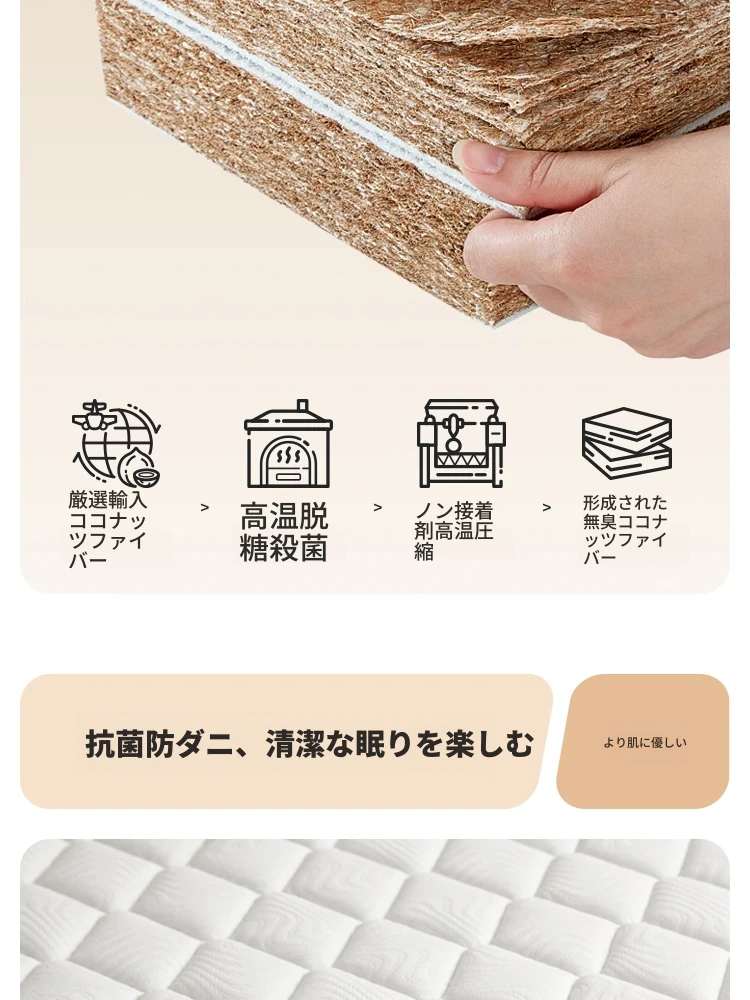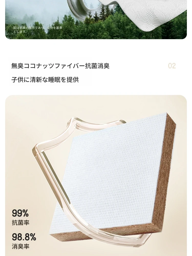 林氏家居のココナッツファイバー子供用マットレス - グルーなし、天然ラテックスで背骨をしっかりサポート!折りたたみ可能で薄型の硬めマットレス。安心・快適な睡眠を提供する林氏の木材製品。