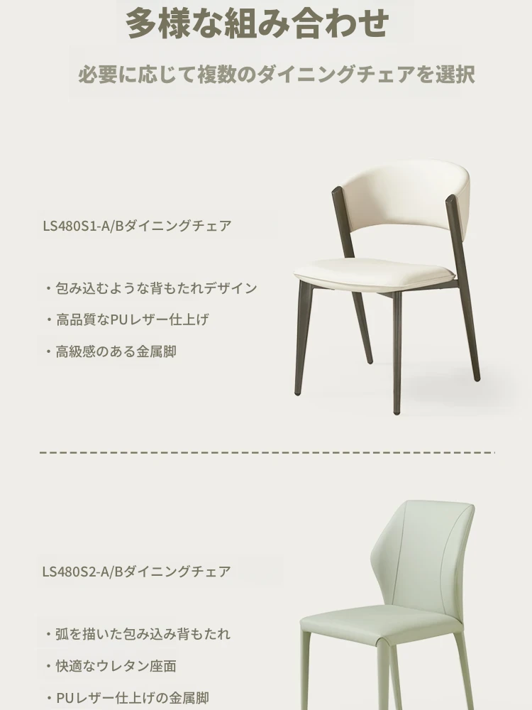 【スモーキーグレー+グレイシャーホワイト】LS480R1-Aダイニングテーブル+LS480S1-Aダイニングチェア*6