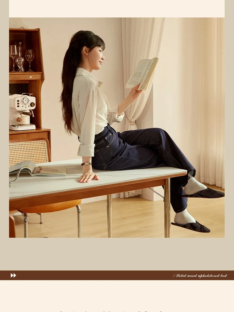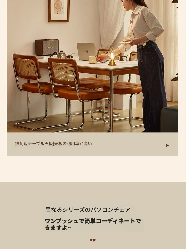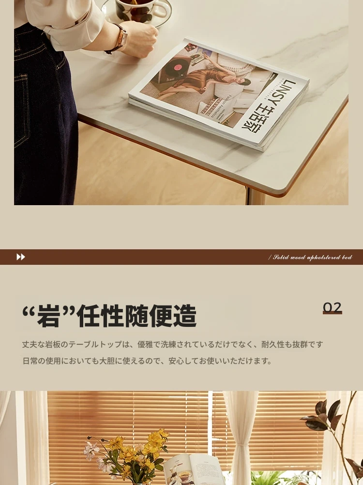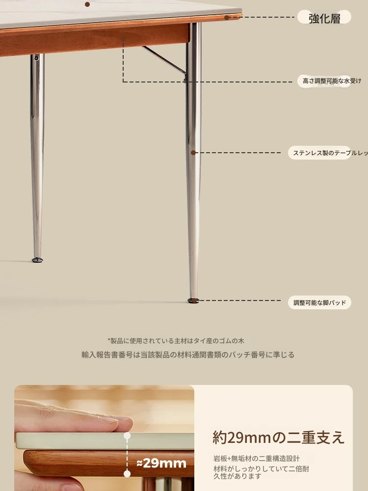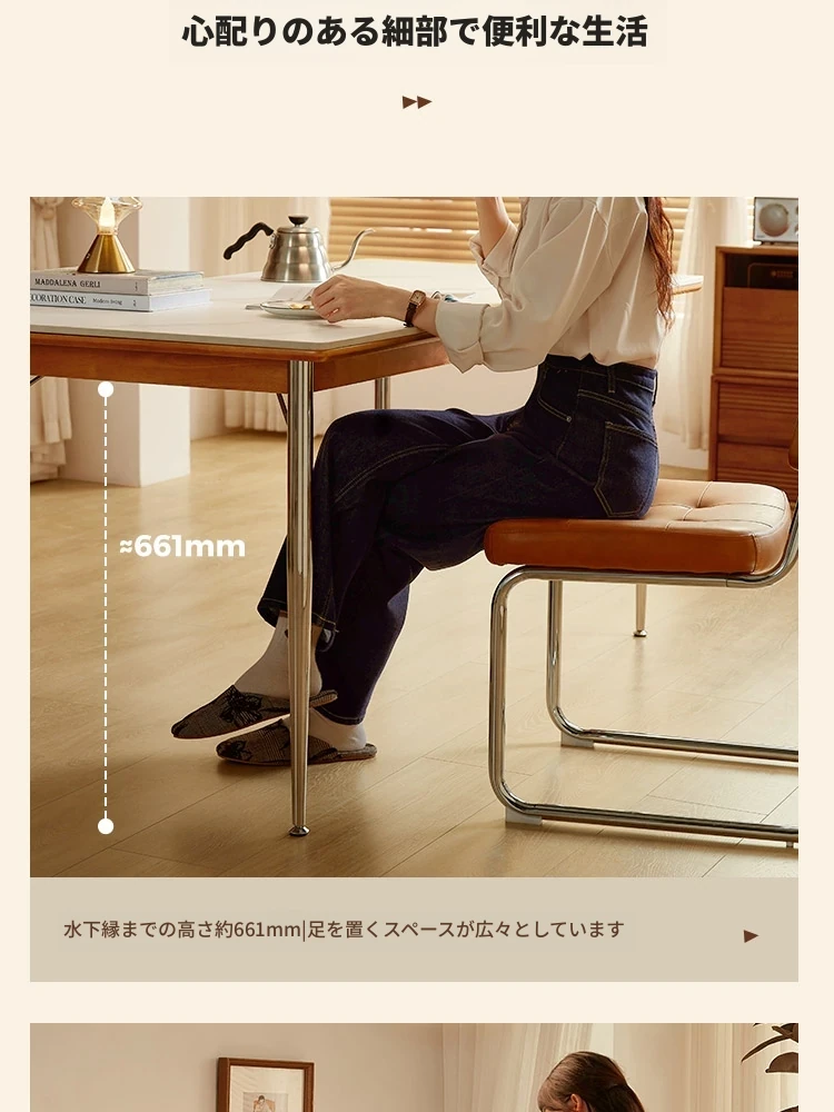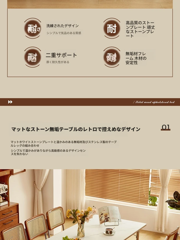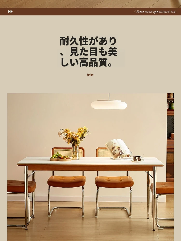 林氏家居のレトロな無垢材ダイニングテーブル兼デスク - スタイリッシュなスクエア岩板天板で、食事と仕事を快適に!高品質な座席付き、あなたのライフスタイルを格上げ!
