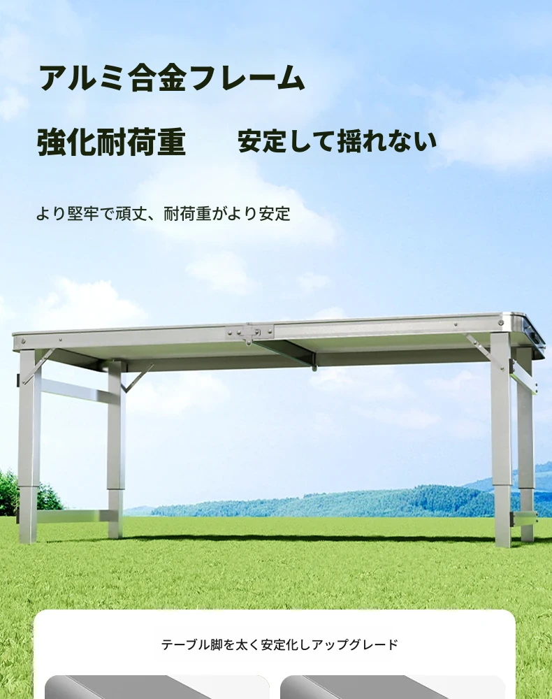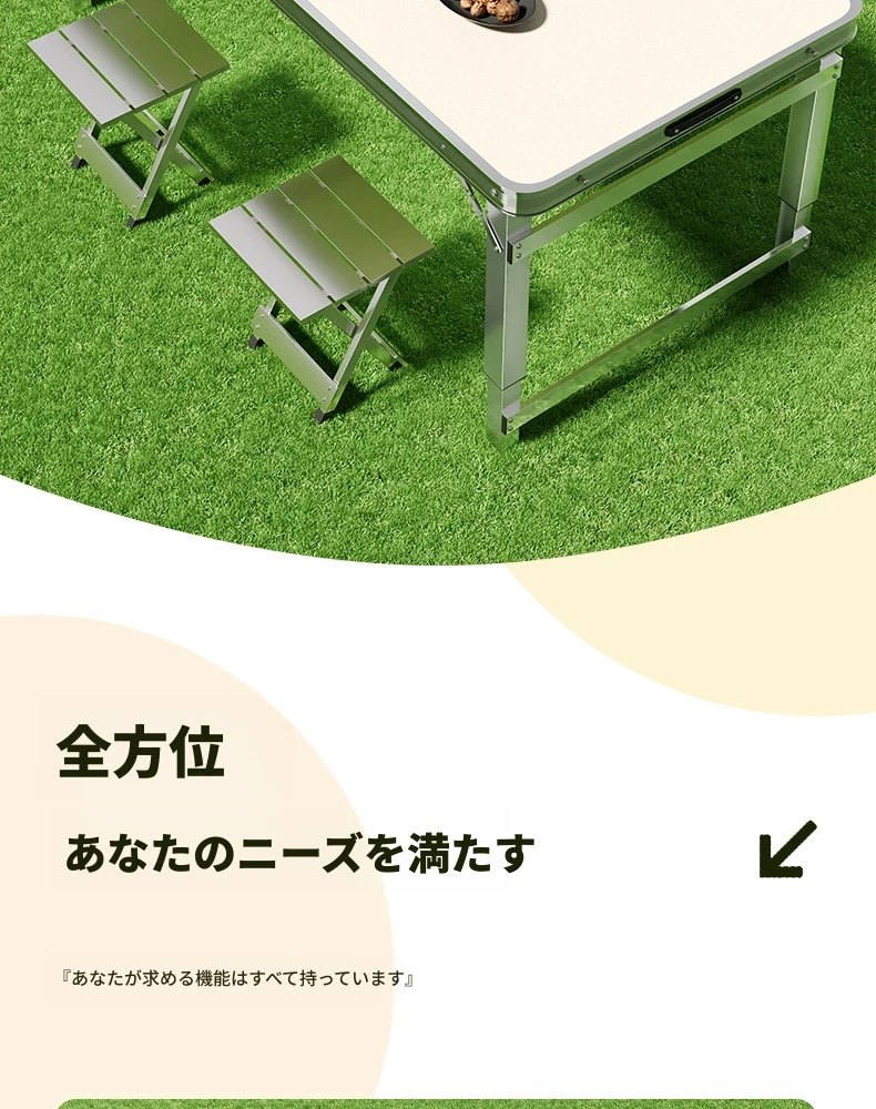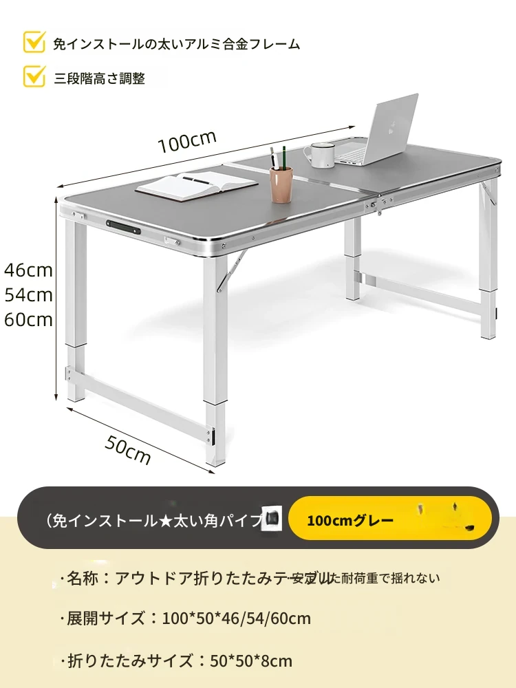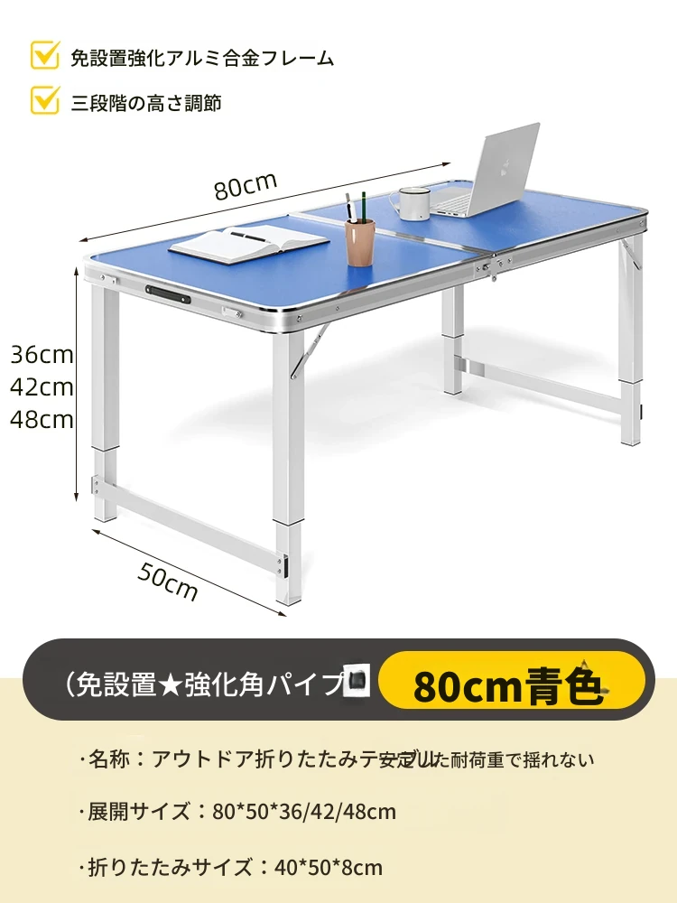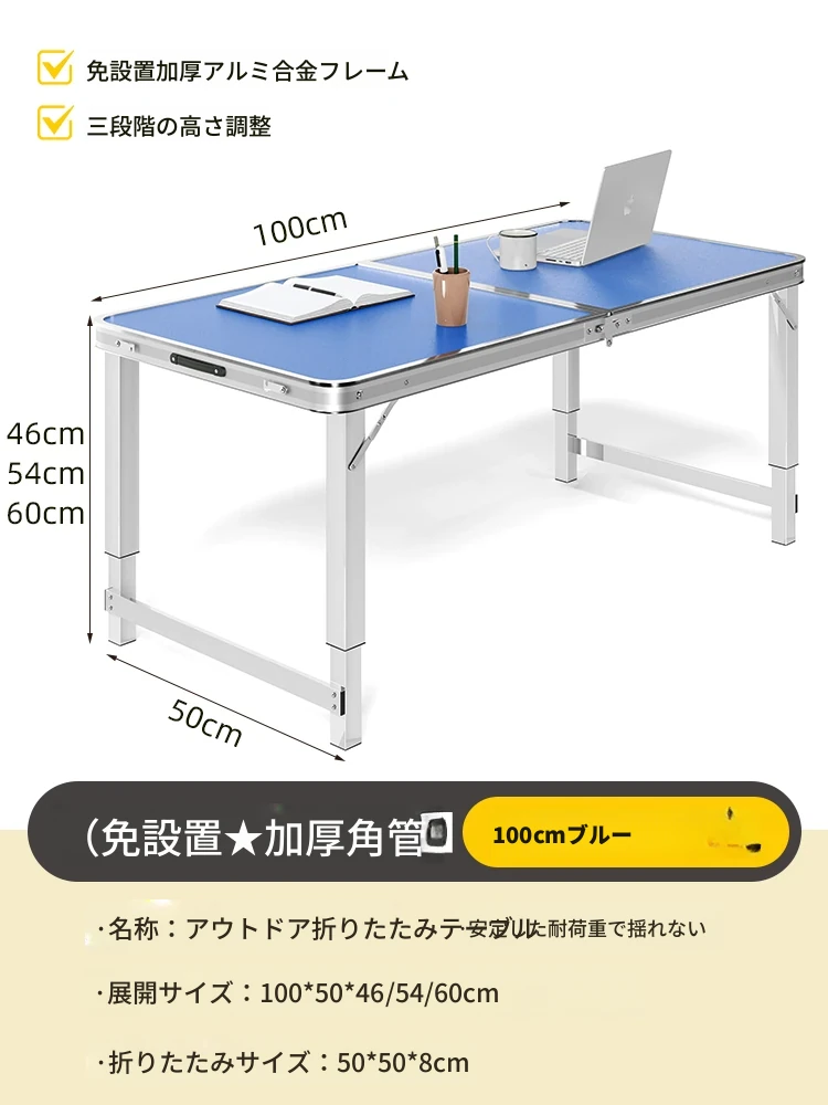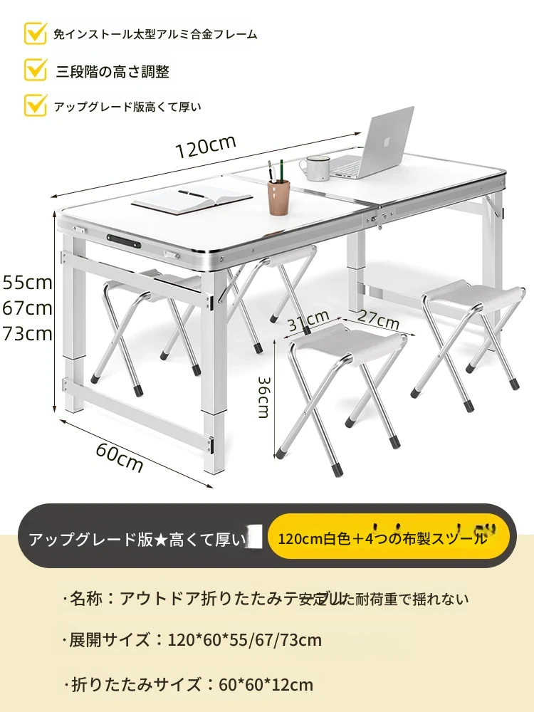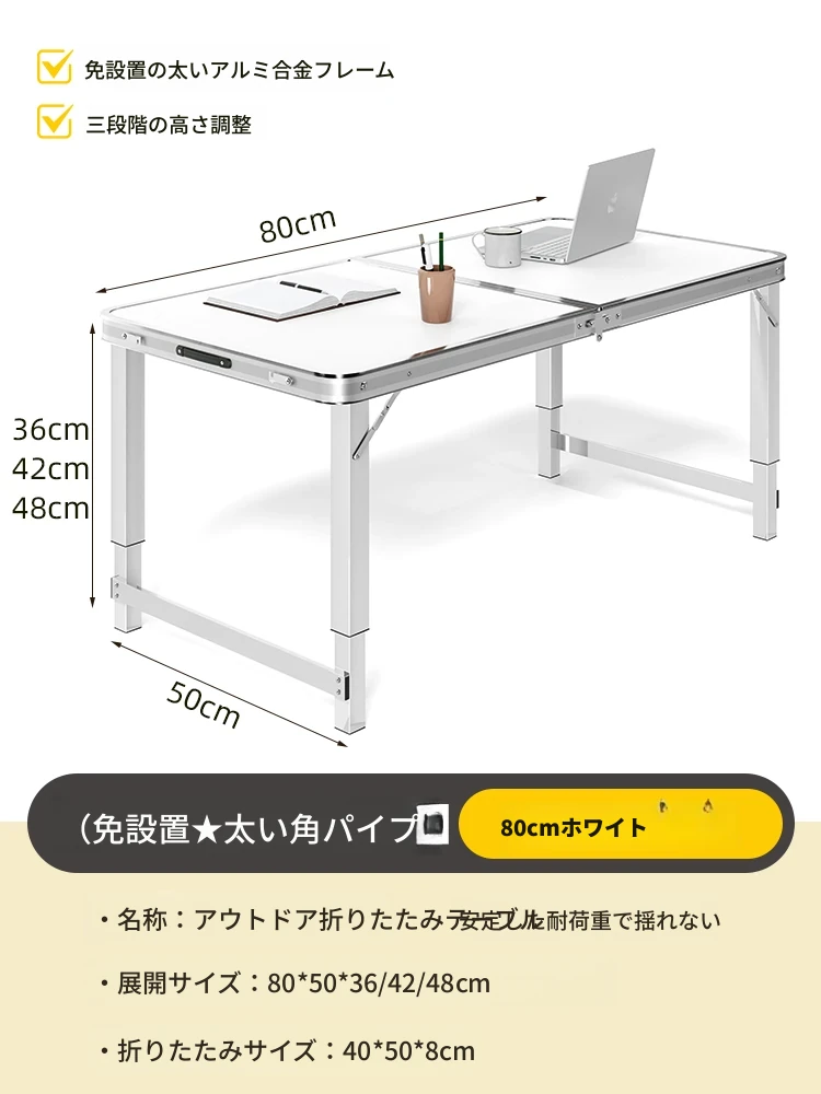 折りたたみ式ポータブルアウトドアテーブル - 高さ調整可能なアルミ合金製キャンプ&ピクニックテーブル!簡単に持ち運べる夜市や屋外イベントに最適!使い勝手抜群の小型テーブルチェアセット。