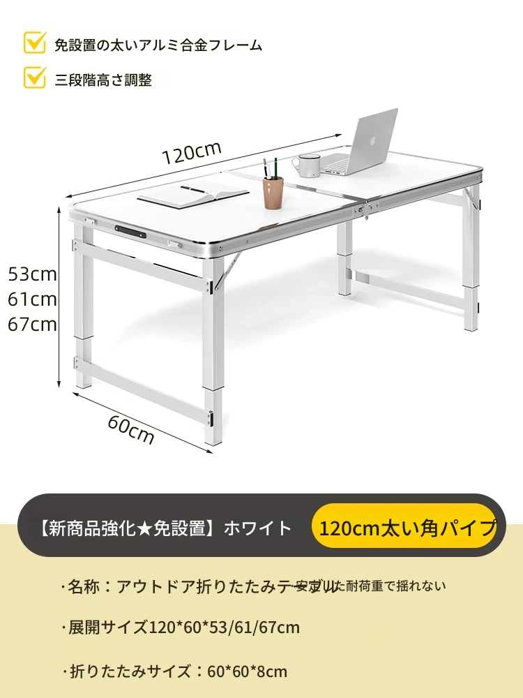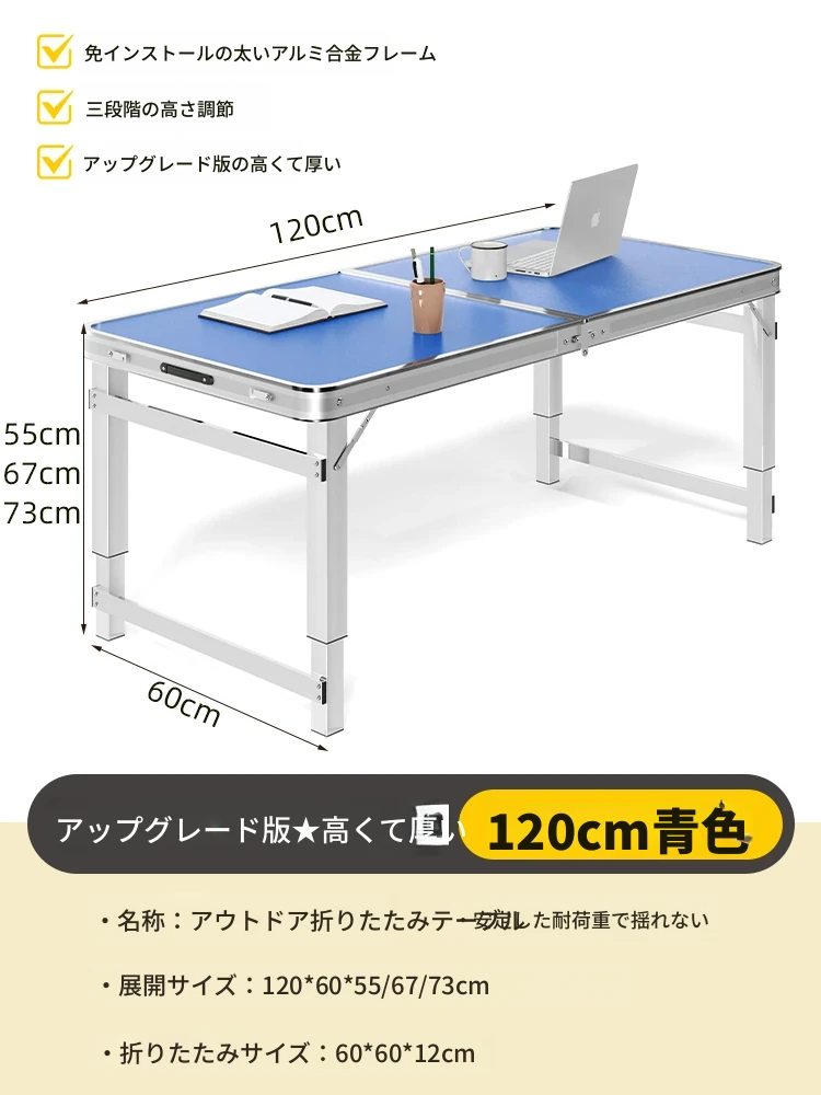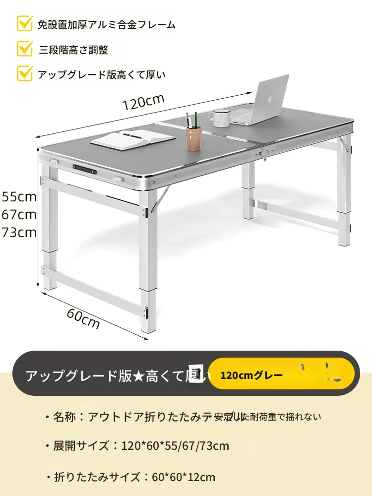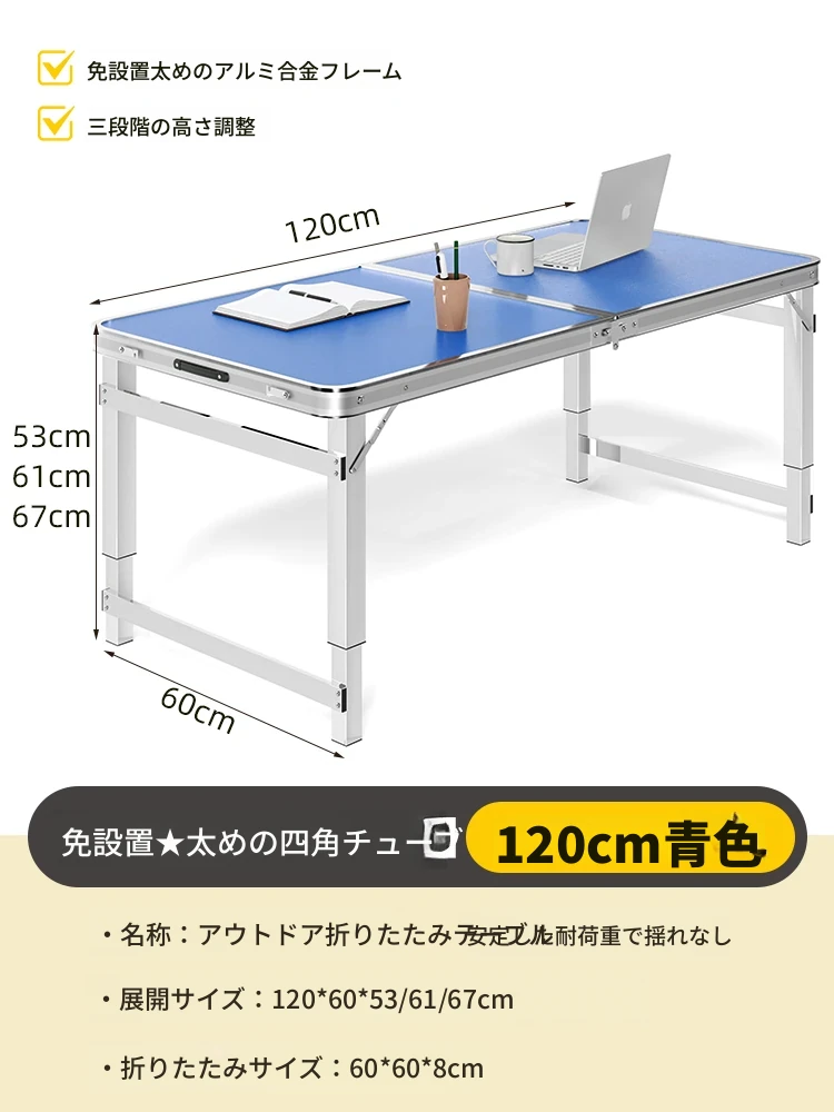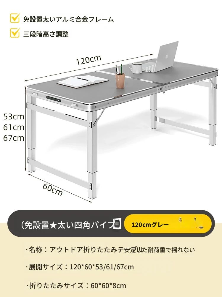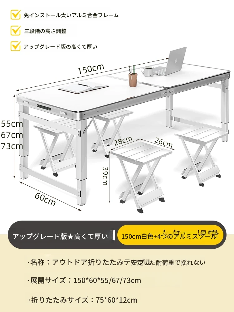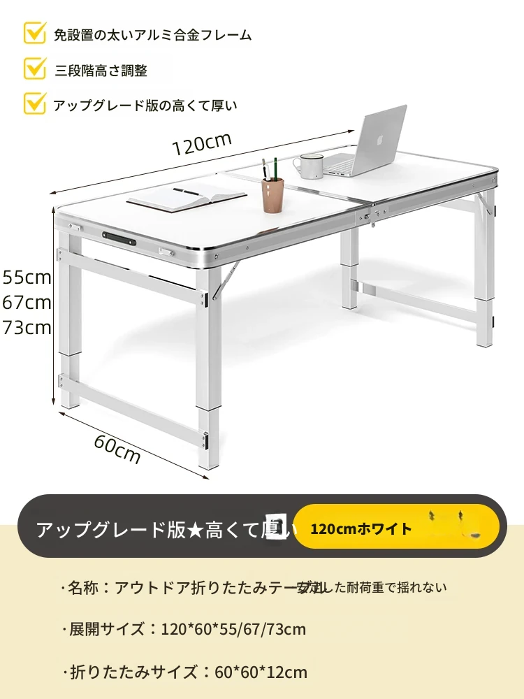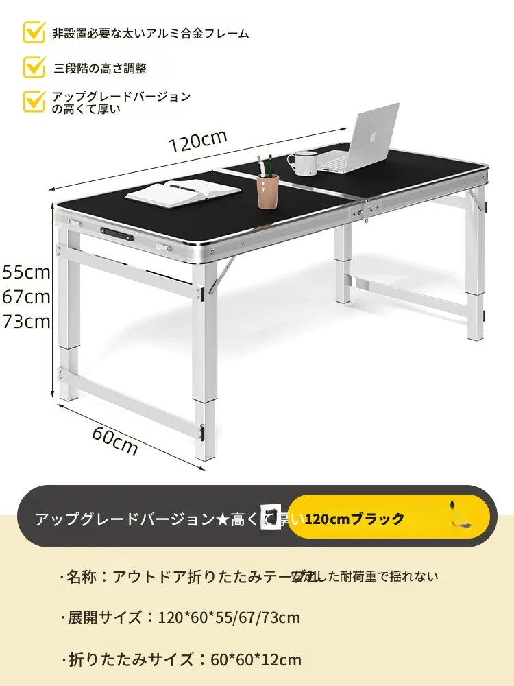折りたたみ式ポータブルアウトドアテーブル - 高さ調整可能なアルミ合金製キャンプ&ピクニックテーブル!簡単に持ち運べる夜市や屋外イベントに最適!使い勝手抜群の小型テーブルチェアセット。