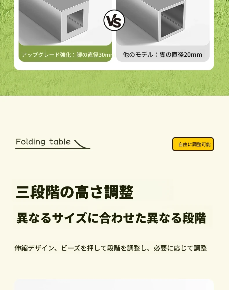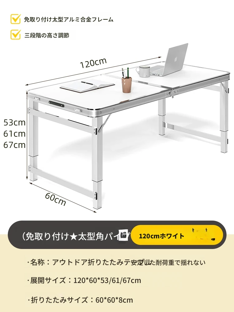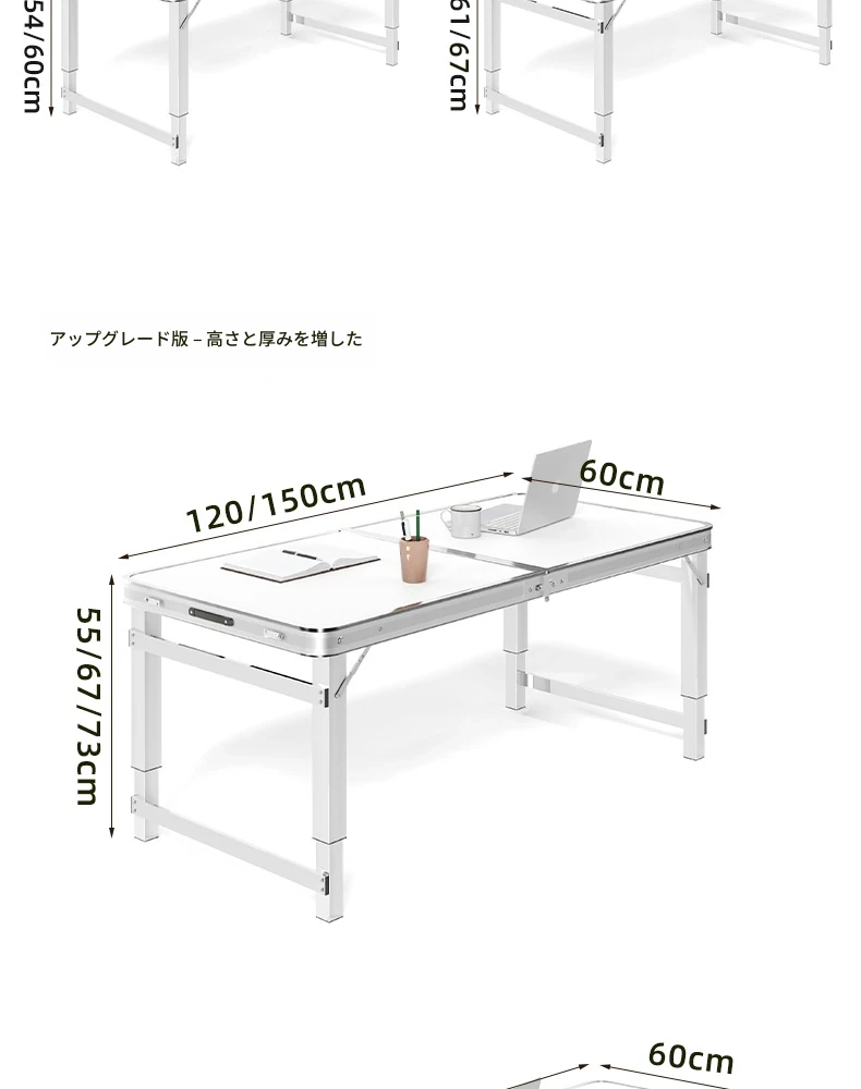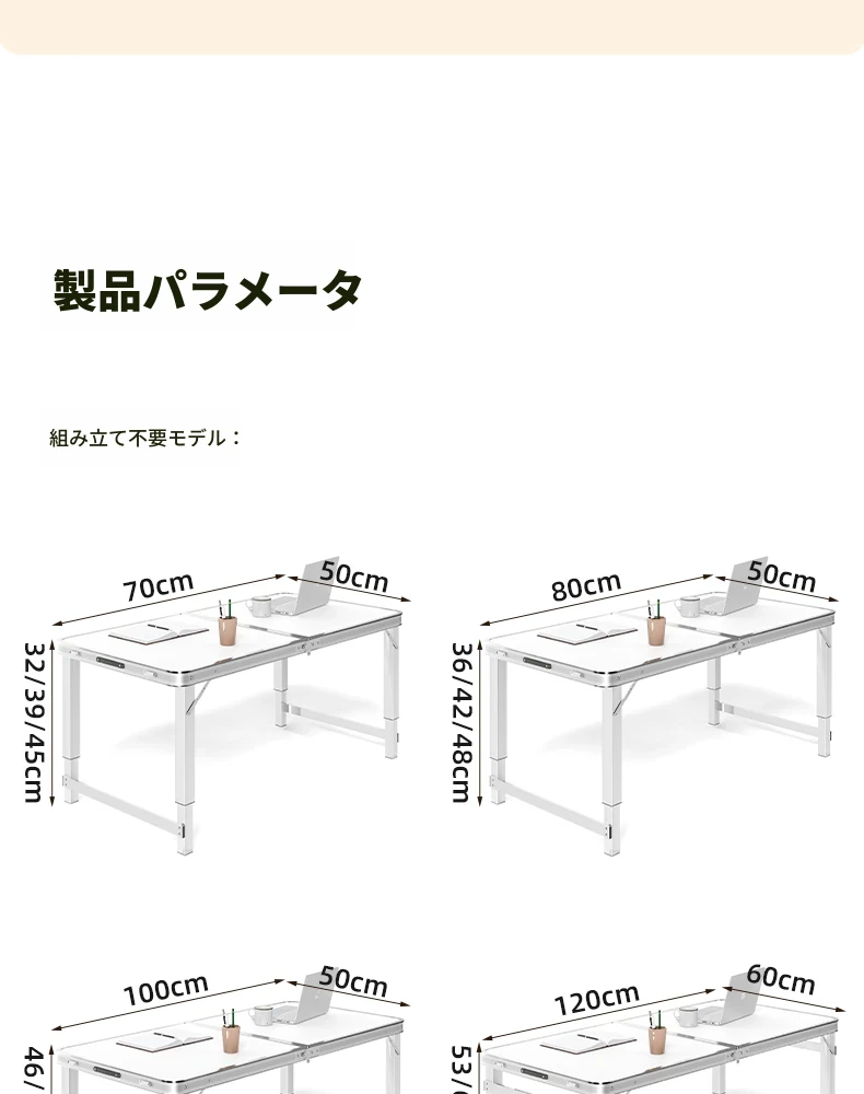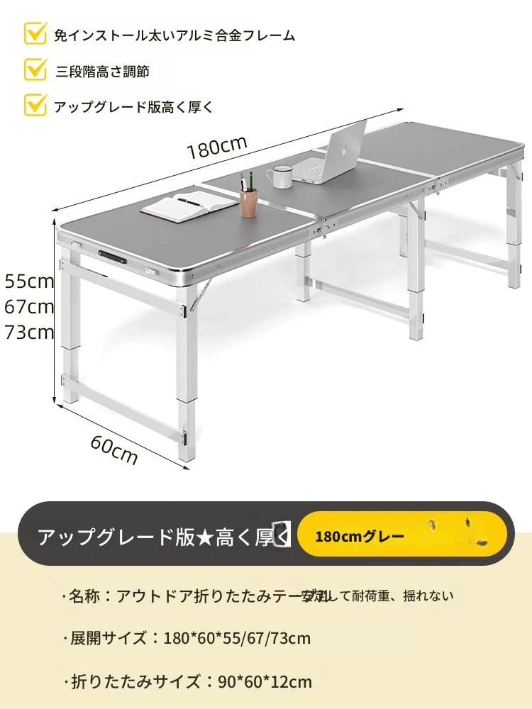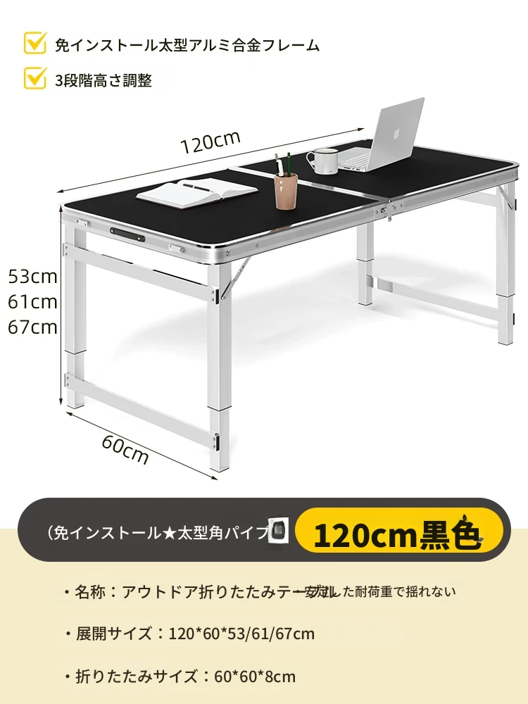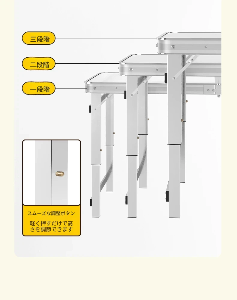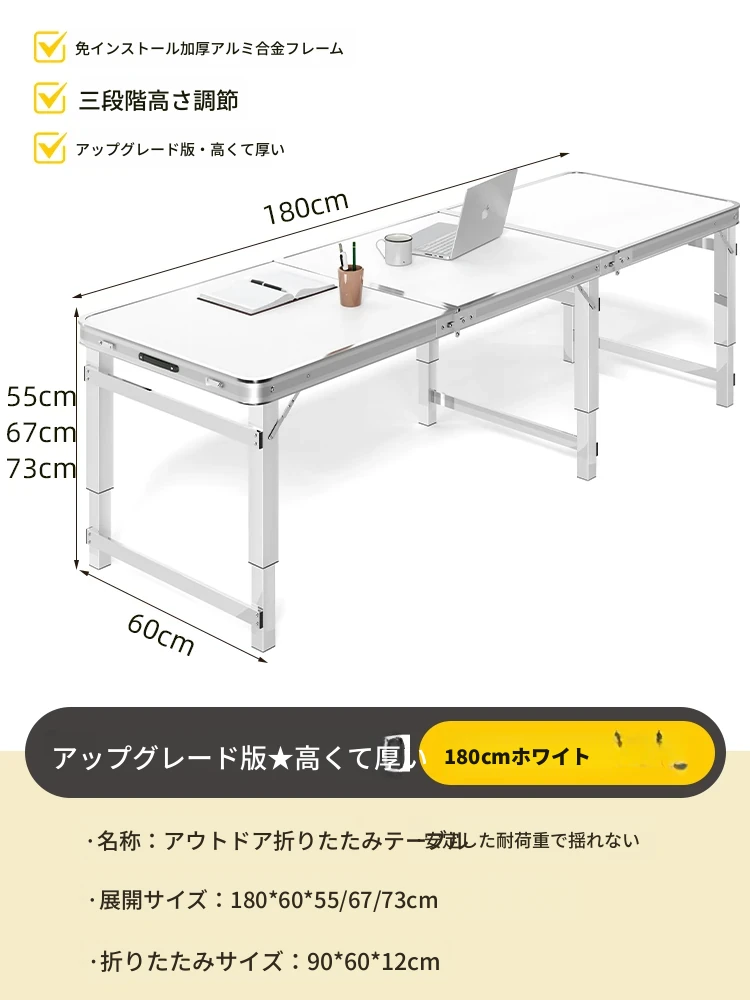 折りたたみ式ポータブルアウトドアテーブル - 高さ調整可能なアルミ合金製キャンプ&ピクニックテーブル!簡単に持ち運べる夜市や屋外イベントに最適!使い勝手抜群の小型テーブルチェアセット。