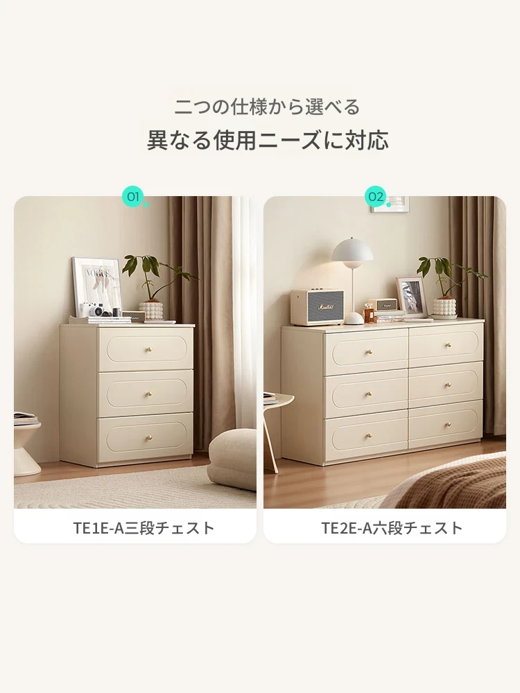 リン氏ホームのクリームカラーの六段チェスト、寝室のベッドの足元にぴったり!スタイリッシュで機能的、収納力抜群のアイテムです。あなたの寝室をおしゃれに演出します!